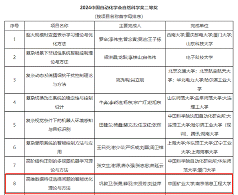 中国矿业大学作为第一完成单位、张勇教授作为第二完成人的项目“高维数据特征选择问题的智能优化理论与方法”荣获自然科学奖二等奖:随着先进控制和人工智能技术的发展,智能制造等领域产生的数据持续增长。基于智能优化的特征选择方法,能够借助全局搜索机制找到最优特征子集,简化模型复杂度,成为一种重要的数据降维技术。但是,受知识驱动智能搜索机理不清、高维特征空间协同探索机制不明、特征子集性能评价体系不完备等限制,现有方法存在搜索策略自主性差、维数灾难现象严重、最优特征子集适用场景有限等难题。项目深入研究高维数据特征选择问题的智能优化理论与方法,给出了多域知识协同学习的智能搜索策略自演化机制,提出了高维特征空间分割的合作型协同智能搜索架构,建立了代价敏感特征选择问题的多目标智能优化体系,成功用于典型肺炎诊断、语言康复治疗评估等问题,突破了目标增多和不确定对智能优化方法设计的双重挑战。