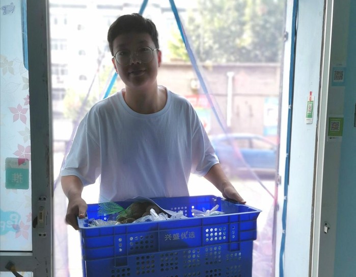 7月17日,实践队员李跃修前往所在社区附近门店进行采访调查。采访到疫情期间下岗失业的李师傅,如今李师傅已经是一位社区网络代购收货点的经营者。队员采访了解到,由于疫情期间外出不方便,出门采购存在风险,地方政府及社区工作人员引进代购点进社区,有了社区工作人员的帮助,加之迎合社区住户需求,代购店经营十分顺利。调查中发现李师傅作为门店经营者,未办理相关部门发放的健康证,实践队员为其普及了相关规定及疫情防护措施并提醒及时办理。进行采访时适逢代购点进货,实践队员当即加入帮助搬运货物。