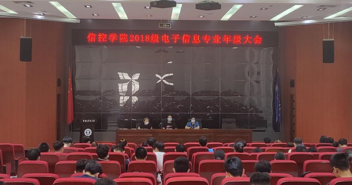 在信控楼A101报告厅召开2018级电子信息专业年级大会,会议由a片漫画