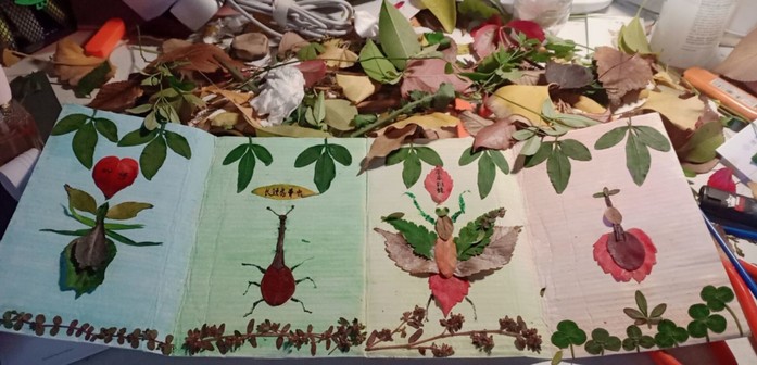本次活动分为树叶雕刻与树叶拼接两种参与形式。参赛队伍需要在保持落叶完整性的前提下,通过拼接、雕刻的形式融入自己的创意,清晰地展示作品主题。同学们在活动中勤思善问、不断创新,涌现了许多优秀的作品,如孔雀、昆虫、起舞的人等。工作人员在三个工作日内完成了作品打分、评奖,并将获奖作品在公众号上进行展示。