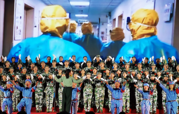 排在第十五位登台表演,首先演唱了必选曲目《中国矿业大学校歌》,伴随着激昂的音乐,合唱队员们精神饱满、放声歌唱,用嘹亮的歌声唱出了同学们对学校的祝福,唱出了学子们对母校的热爱之情。然后合唱《胜利召唤—抗疫版》曲目,“子弟兵,使命扛肩上,向前方,我们和时间赛跑”,唱出了军医们奔赴防疫一线的决心,将新时代青年气魄与胆识淋漓尽致地表现出来。