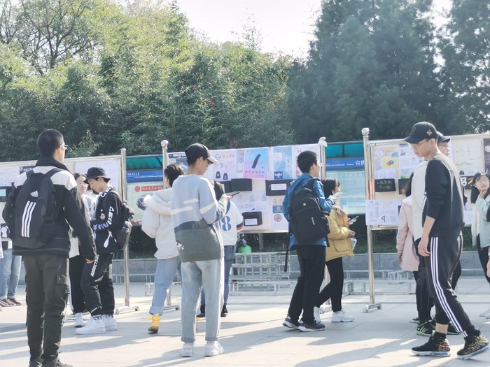 中午,各班的班服、班徽、班旗设计图与设计方案于青春广场展出。此次展出主要目的为投票评选,全校师生均可参与投票。同学们凭借学号或校园卡限领一张投选票,对自己喜欢的作品进行投票。,可以看到a片漫画