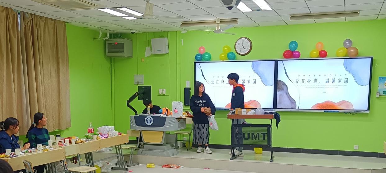 为团结班内同学,增强班级凝聚力,11月14日下午,电子信息类21-04班举行了“爱在身边,温馨家园”主题班会。
