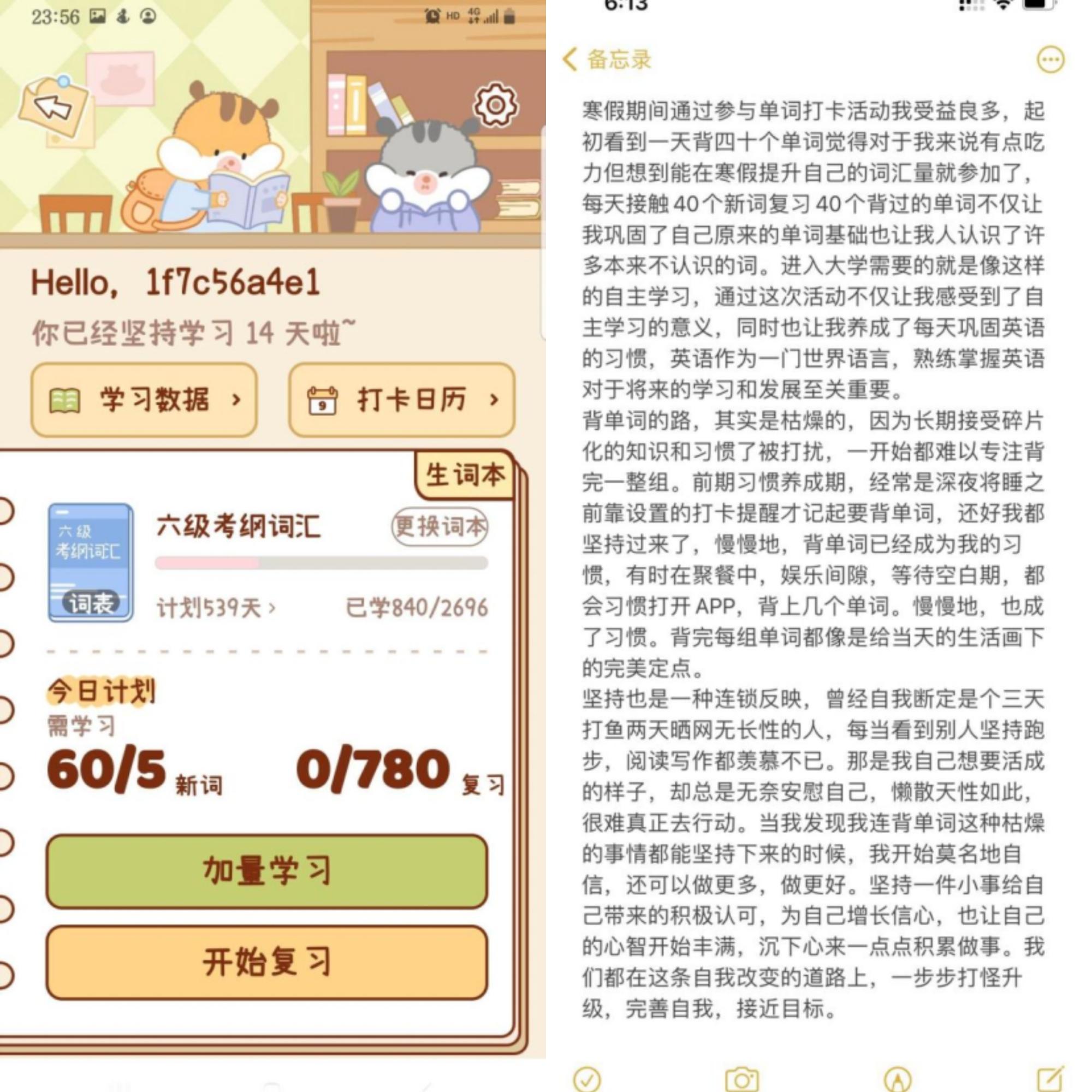 活动中,参与的大部分同学每日能完成100-120个单词的记忆,比活动规定的基础记忆量翻了两倍。参与的同学们纷纷发表了自己的学习心得和收获,他们表示通过参与活动受益良多,活动帮助自身克服了惰性心理,养成了良好的学习习惯。