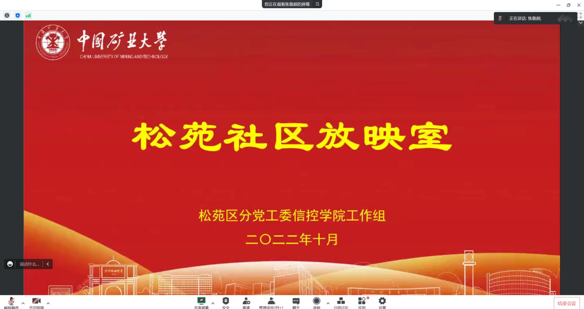 于10月30日线上举行了“人文浸润,芳菲四季”主题教育活动之“松苑社区放映室”,观看经典红色电影《永不消逝的电波》,学院第62期入党积极分子和发展对象培训班学员参加了本次活动。
