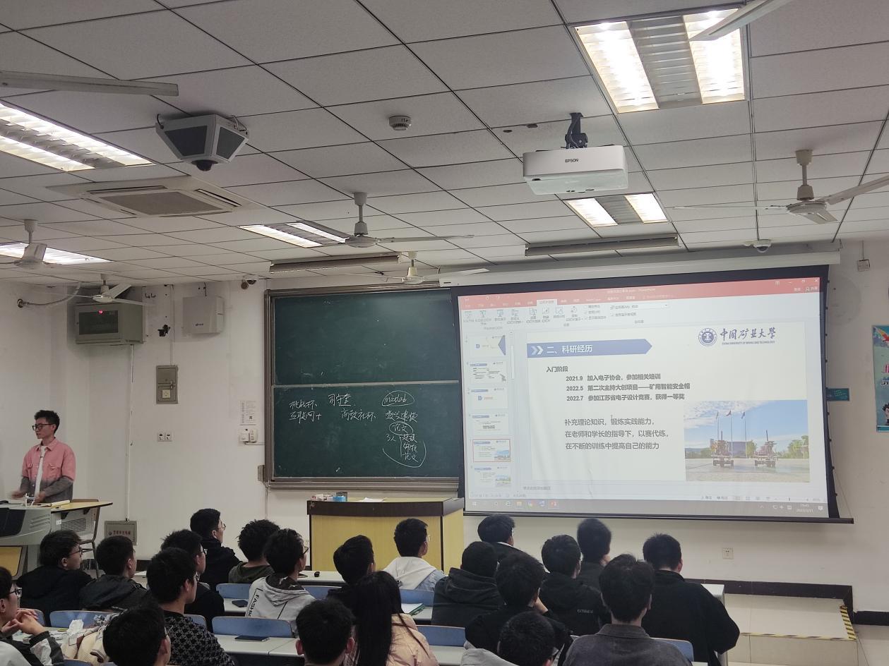 2022级辅导员谢龙龙对本次报告会进行了总结,他希望同学们积极参与科研实践,努力提升自己的专业水平,为建设科技强国贡献青春力量。