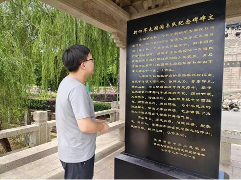 7月20日,实践团成员潘兴恒参观游览了太湖之滨的新四军太湖游击队纪念馆,通过近距离地接触那些革命先辈的红色故事,潘兴恒感受到革命先烈们那坚韧不拔的革命精神并没有消失,而是随着时代的发展而发展,始终具有生机,并激励他不断向前,汲取吸收近百年前的先辈们的信念,为党和国家做出更多贡献。