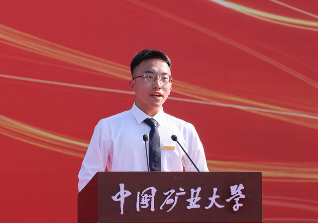 在发言中,王麒尧同学讲述了自己在矿大度过的本科时光和赴广西田东的支教经历,表示将把个人的理想追求融入党和国家事业之中,到祖国最需要的地方绽放绚丽的青春之花。他号召全体新同学做刻苦钻研的奋斗者、做起而行之的实干家、做信念坚定的追梦人,勇敢担负起时代使命和重任。