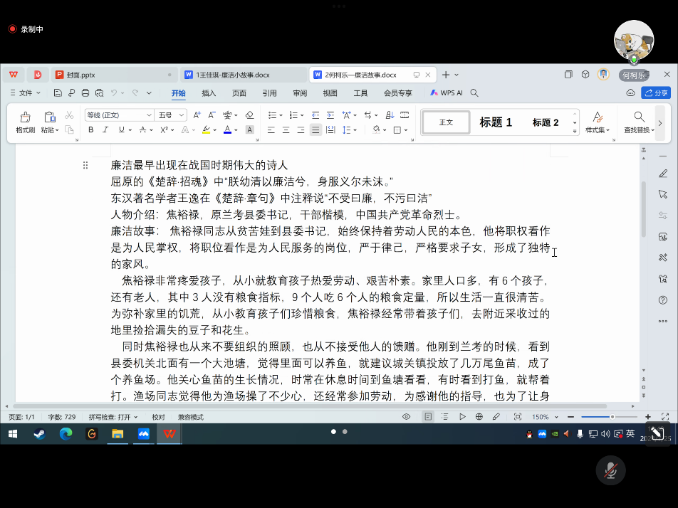 本科生第一党支部举办“廉洁故事线上分享会”活动。