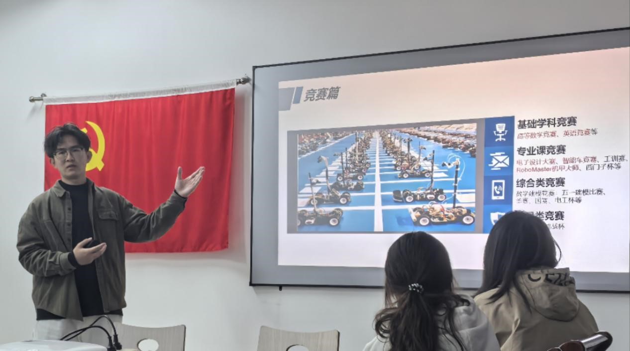 在讲座上,武昱泽学长分别就竞赛、科研等方面进行讲解,详细解读各个大赛的要求以及学校关于大创立项相关文件,同时也分享了自己在参加竞赛时遇到的困难以及应对突发事件的方法。此外,他强调要平衡好学习与科创之间的关系,计划好学习和比赛的时间,看淡比赛结果,注重过程。他还提出了一些实用的科创竞赛准备方法,建议同学们在组队时要根据成员的专业技能和兴趣爱好进行合理搭配,确保团队具备多方面的能力。讲座结束后,同学们纷纷表示此次讲解使他们对科创竞赛有更深刻的了解。
