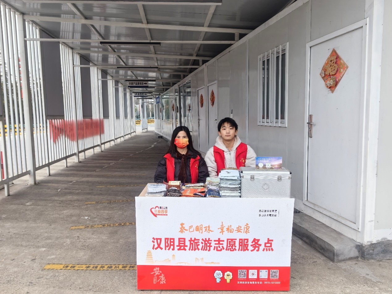 活动中,团队成员身着整齐服装,精神抖擞地向过往车辆与游客发放宣传资料,结合资料中汉阴县凤堰古梯田的绝美风光照片、承载历史底蕴的明清建筑图片向游客描述汉阴县的风景,并介绍了当地炕炕馍、涧池烩面片等特色美食。面对游客在阅读资料后的各种咨询,团队成员们都进行了耐心细致地解答,并根据游客的需求作出适当的推荐。