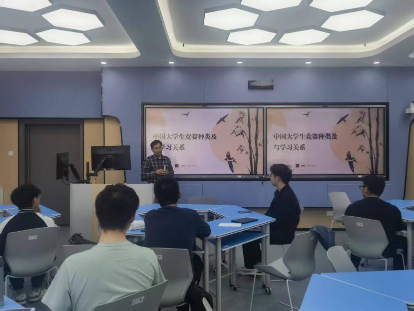 贾存良老师系统梳理了学院学生重点参与的科创竞赛体系,详细介绍了不同类型竞赛的差异化特征,结合历年的优秀案例,生动阐释了从选题设计到成果转化的关键环。他特别强调,科创实践与专业学习具有协同效应,鼓励同学们积极投身于各类科创活动,在实践中锻炼自己,提升综合素质。针对备赛知识储备和备赛建议,贾老师指出扎实的知识储备、高效的团队协作和过硬的动手实践能力是取得好成绩的重要因素,勇敢迈出关键的第一步是重要前提。