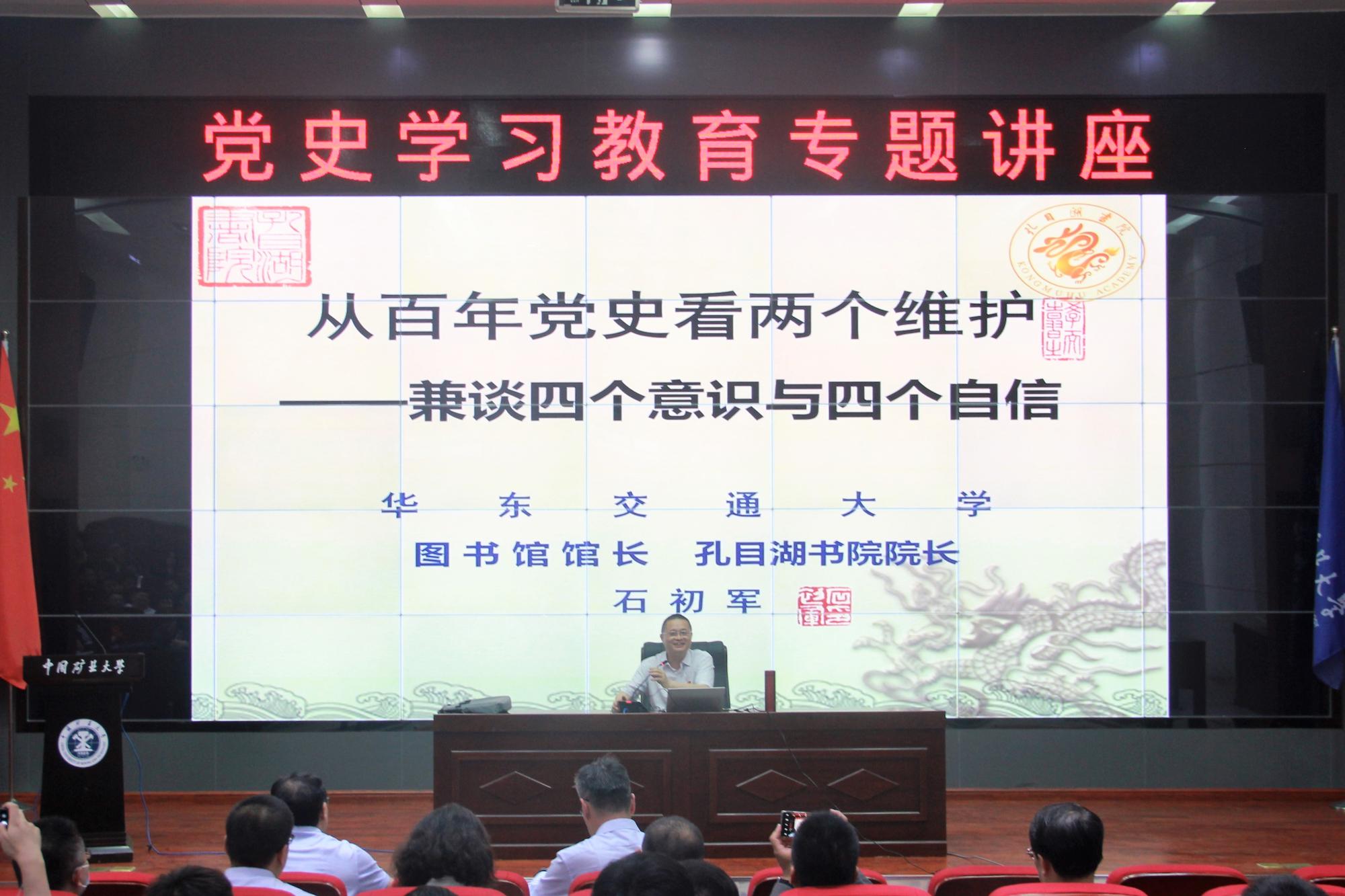报告厅举办党史学习教育专题讲座。华东交通大学图书馆馆长、孔目湖书院院长石初军应邀作专题报告。学院师生党员代表聆听了讲座。