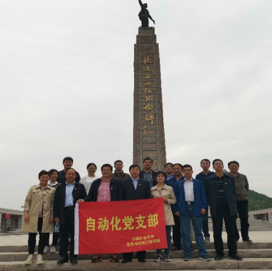 党委书记吴瑜、院长李明、副院长王雪松及自动化党支部全体党员走进枣庄集团“党性体检”教育基地,学习提高党性修养的方法和途径,体验菜单式自评与互评党性体检并形成个人“党性体检报告”。在铁道游击队英雄纪念碑前,一行人深切缅怀为抗击外敌侵略而英勇牺牲的先烈们,充分感受到铁道游击队“赤诚报国、不怕牺牲、机智灵活、勇于亮剑”的精神。参观结束后,一行人来到枣矿集团矿用设备制造新远大实业有限公司进行调研,了解当前煤矿企业关注的热点和急需解决的难题,结合个人和学科发展,进行科研课题的挖掘。