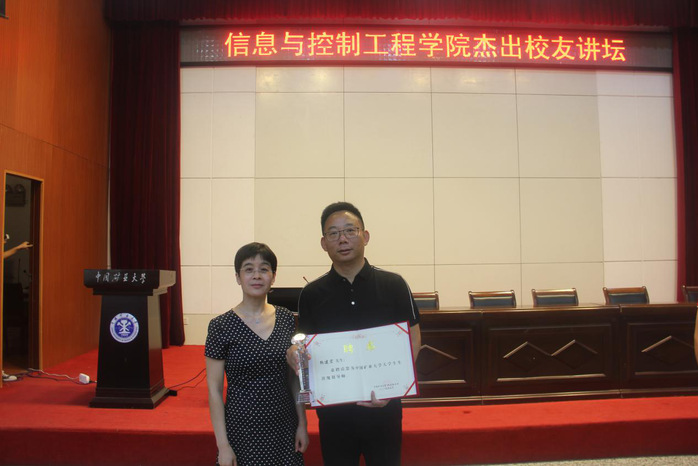 副院长王雪松为校友鞠建宏先生颁发了“中国矿业大学大学生生涯规划导师”证书并合影留念。