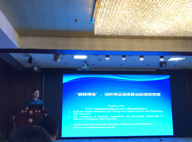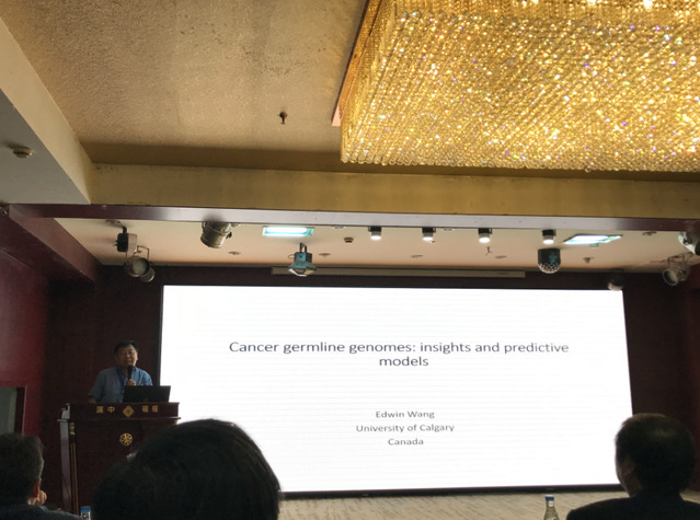 开幕式后,Edwin Wang教授为大家进行了题为“Cancer germline genomics: from biological insights to genomic predictions”的报告,详细介绍了他们在癌症遗传基因组学方面的最新重要研究成果。崔庆华教授为大家做了题为“microRNA 和 lncRNA 重要性计算”的报告,介绍了他们在非编码RNA方面的科研成果。骆嘉伟教授和周丰丰教授分别作了题为“人工智能在复杂疾病发病机理分析中的应用”和““弱弱得强”,浅析特征选择算法的深挖空间”的报告,为大家展示了他们在生物信息学算法方面的研究进展。陈兴教授作了题为“大数据时代下基于网络算法和机器学习的生物信息学研究”的大会报告,介绍了他所领衔的团队在矿大这两年多取的一系列学术成果。下午,南京林业大学教授业宁,扬州大学教授张韬,江南大学教授戴晓峰,东南大学副教授涂景,苏州大学副教授胡广,淮海工学院副教授卢辰,新格元(南京)生物科技有限公司范珏博士,南京航空航天大学的刘海洲博士,中国矿业大学的瞿佳博士进行了大会报告。报告内容涉及生物信息学各个领域,引起参会代表的热烈讨论。