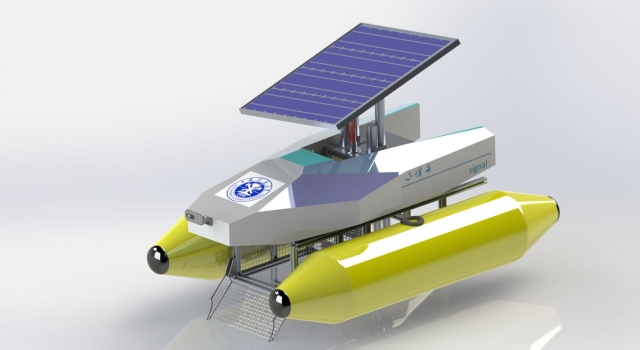 本次参赛作品是一艘由太阳能供电、利用无人机规划清扫路径、借助机器视觉进行自主导航、实现高效清洁小型水域的智能清洁船,作品由a片漫画