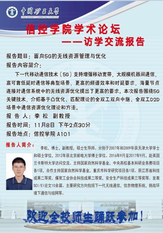 报告题目2:面向5G的无线资源管理与优化