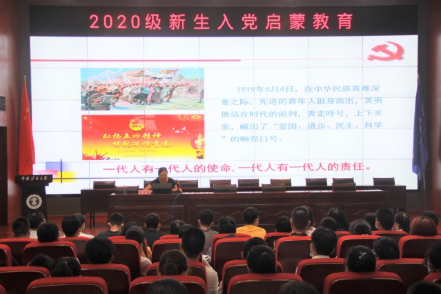 于学院楼A101报告厅组织召开入党启蒙教育讲座,学院邀请党校办公室主任马文彬老师主讲,全体2020级本科新生聆听此次讲座。