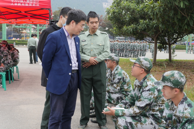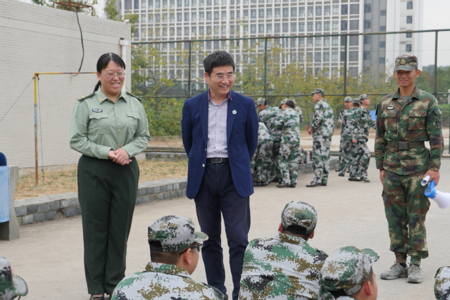 在军训现场,两位领导与承训教官、新生辅导员亲切交谈,询问了军训工作进展情况,肯定了参训新生们饱满的精神状态,并代表学院对教官们、辅导员老师及工作人员的辛勤付出表示衷心的感谢。学院领导还亲切看望了由于身体原因而随训的学生,仔细询问同学们的身体情况,表达对他们的关心和鼓励。
