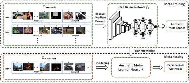 基于深度元学习的个性化图像美学评价方法从个性化角度分析了个体用户在图像美学评估上存在的差异问题。为了利用用户少量的标注样本有效地对其个性化图像审美感知进行评估,通过元学习的学会学习能力获取不同用户对图像的审美感知的共享先验知识,然后仅需要待测试用户的少量训练样本就可以快速构建符合此用户的个性化图像美学评价模型。该方法对探究用户的个性化图像美学评价方法具有重要的借鉴价值和科学意义,可用于个性化推荐系统的设计与应用。