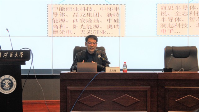 仪式最后,袁庆涛部长从半导体行业背景、公司发展及岗位需求和职业生涯规划三方面做了企业宣讲会暨职业生涯规划讲座,给予同学们一些求职及职业规划方面的建议,并热烈邀请同学们到江苏帝奥微电子股份有限公司就职。