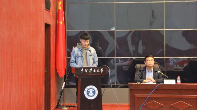 一等奖学金获得者黄子政发言,对学校和企业的共同教育培养深表感谢,并立志今后志存高远、发奋图强、勤奋学习、努力拼搏、回报社会、回报国家,不辜负家长、企业、学校对同学们的培养。