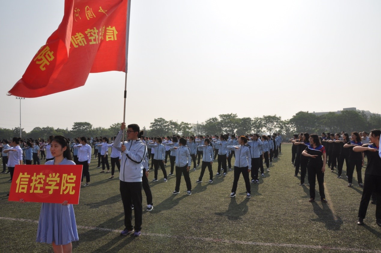 110名教职工迈着铿锵有力的步伐,以崭新的形象展现着信控人朝气蓬勃的精神面貌。学院院长王雪松、党委副书记翟文艳、副院长葛如峰到场助阵。学院工会主席赵培培作为全校运动员代表在开幕式上宣誓。开幕式后进行了全校第九套大众广播体操表演,学院老师们以整齐划一的动作、昂扬向上的精气神,赢得了主席台和观众的阵阵掌声。