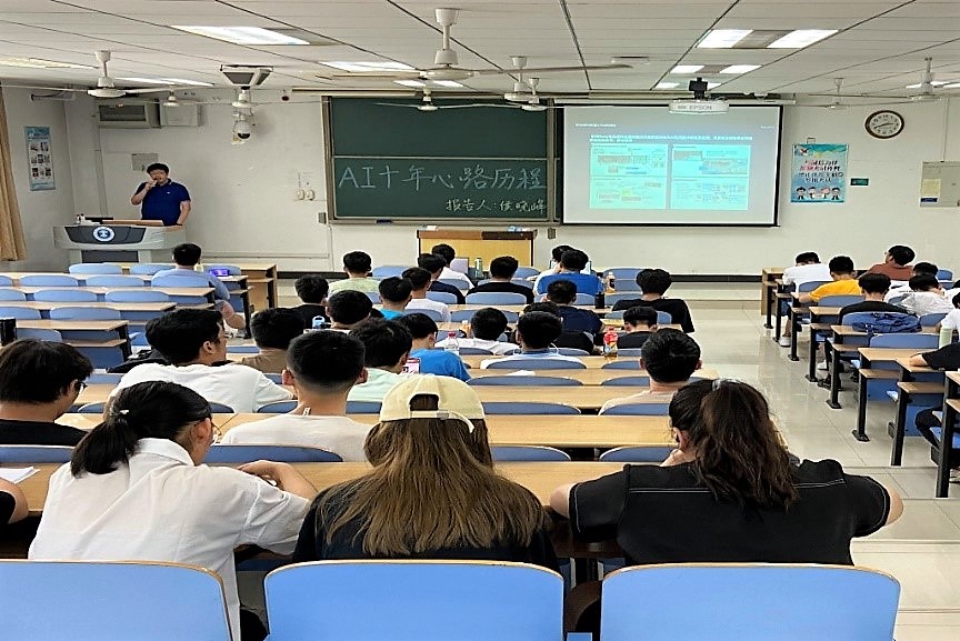 会上,校友侯晓峰回顾了自己过往十余年在500强企业从事AI研究设计的工作经历,分享工作中的点点滴滴,为同学们提供了启示和帮助:一是选择合适自己的AI技术研究方向,提前布局未来工作岗位;二是规划建立自己AI知识体系,掌握获取最新资讯知识的渠道,并加以实践;三是在AI学习中可能会遇到的阻碍以及挑战;四是AI未来发展方向和整体趋势。他从自身的学习经历和职场发展经验出发,与同学们做了细致的交流,鼓励同学们不断学习、不断进步,为同学们消除了心中的疑惑。