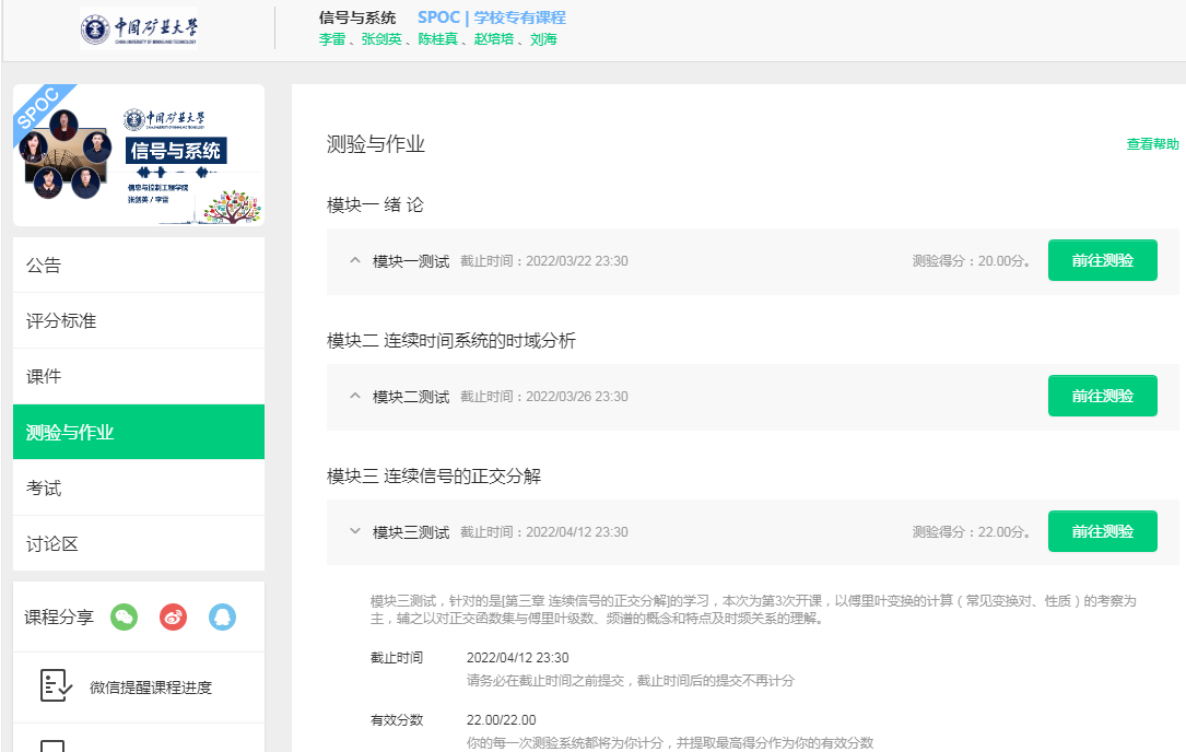 “信号与系统”课程组综合采用多种教学手段进行混合式教学,统一给每位教师配置了摄像头和手写板,结合腾讯课堂和雨课堂按课表开展直播教学,同时依托中国大学慕课自建独立SPOC课程同步进行线上辅导和过程考核(目前选课人数达922人),课前课程组教师在微信群中研讨课程内容、协调教学进度,结合教改自制课程思政视频,并在各个教学QQ群中分享课件、视频等资料,综合SPOC课程讨论区、QQ等进行线上答疑,确保学习效果稳中有升。
