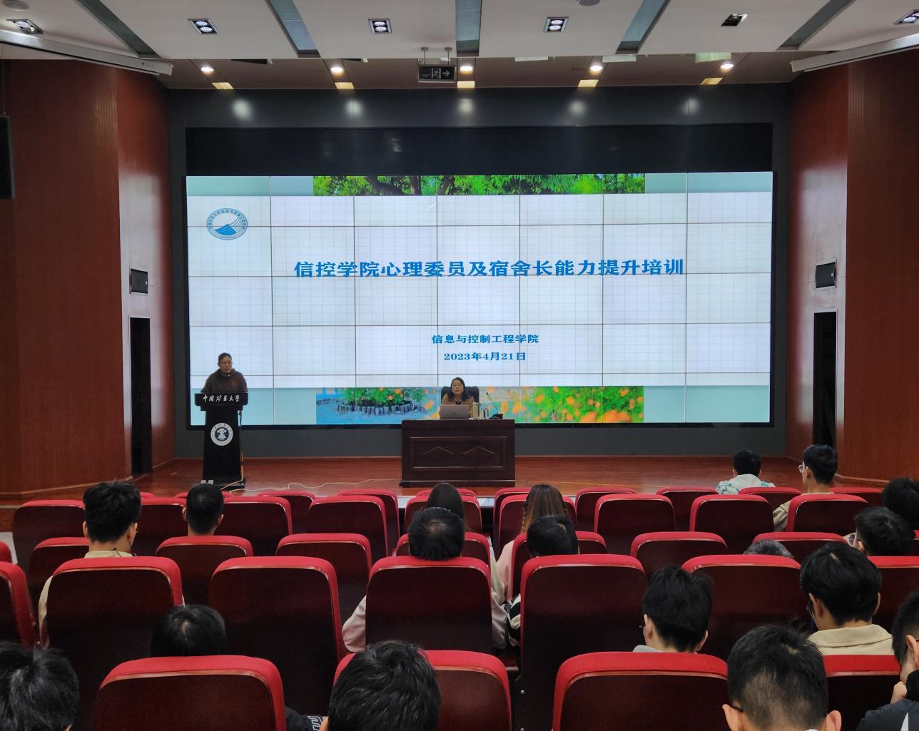 于4月21日晚在学院A101报告厅举办学生心理骨干能力提升培训讲座。讲座由校大学生心理健康教育中心张金健老师主讲,由学院学工办主任管钰老师主持。2022级辅导员李非及学院各年级心理委员、宿舍长参加了讲座。