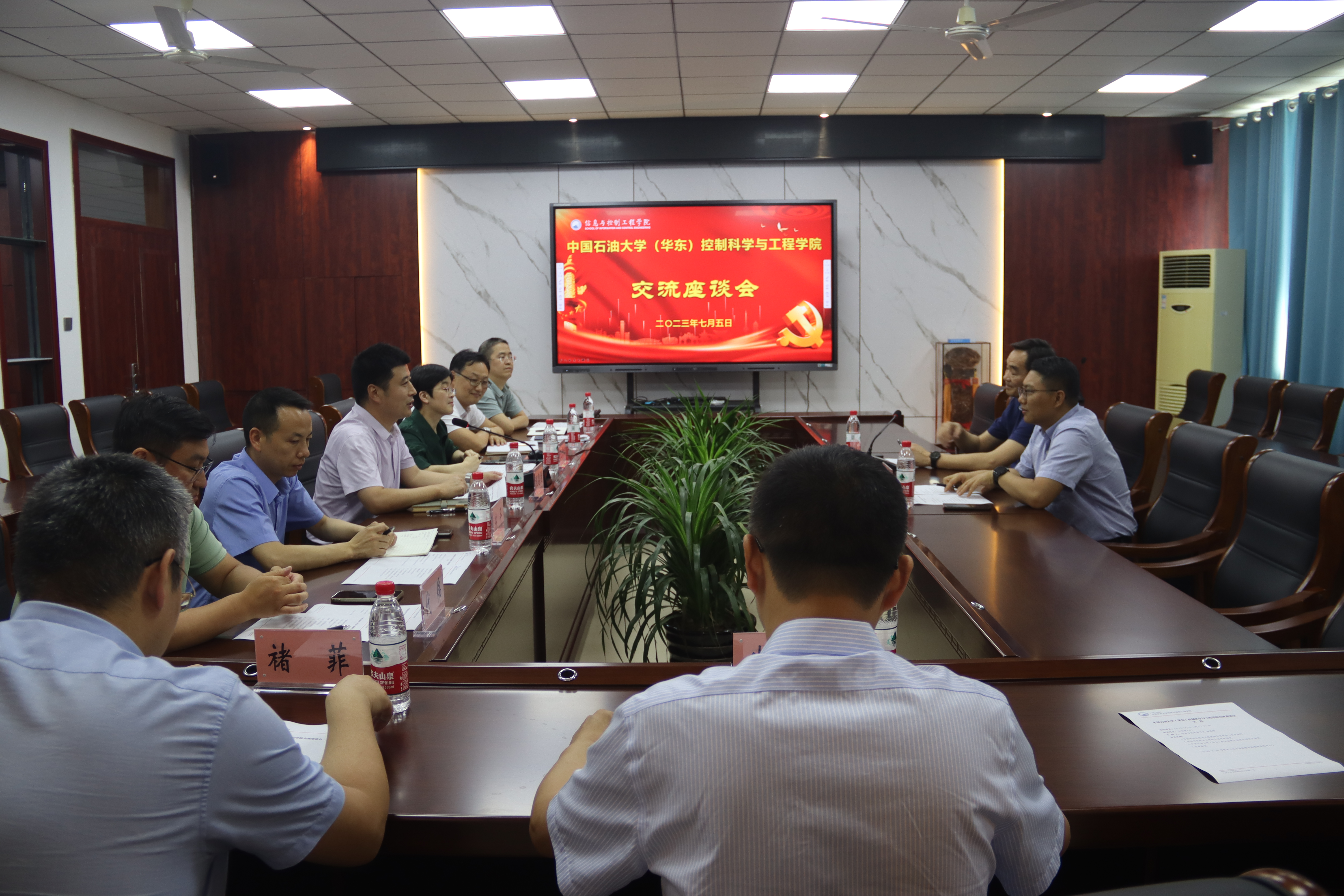 王雪松介绍了我院发展历史、学科科研概况、本科专业与人才培养、师资队伍建设等情况。于连栋介绍了中国石油大学(华东)控制科学与工程学院的发展历史、师资队伍、人才培养、科学研究、实验室与平台建设、文化建设等方面的情况。与会人员围绕控制学科学科建设、研究生培养、自动化专业认证等进行了研讨交流。
