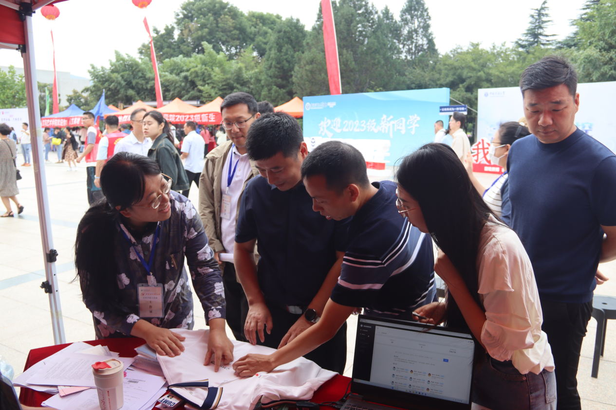 热情迎接新生报到。28日-29日迎新期间,迎新工作人员提前到岗,根据报到工作流程办理报到手续,现场秩序井井有条,志愿者们全程跟随,协助新生做好搬运行李、信息录入、材料领取等工作。学院为2023级新同学精心准备的新生大礼包,包括学院文化衫、定制帆布包、时间规划本、新生手册、心理健康手册等物品,让同学们充分感受到学院的温暖。新生及家长们还纷纷手持迎新标志牌到学院签名墙合影留念。