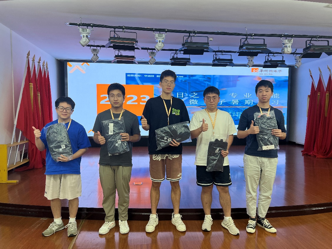 在25日下午的进行的2023年度电子信息工程专业生产实习的结班仪式中,全体老师和华润相关领导一同听取了9组45位同学的实习汇报并进行了点评。