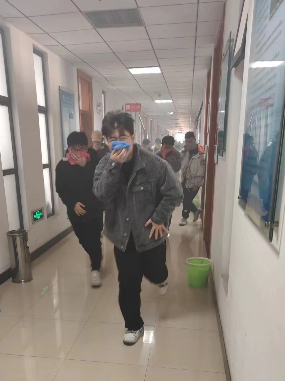 在学院楼举办突发火情应急疏散演练,学院师生100余人参加。