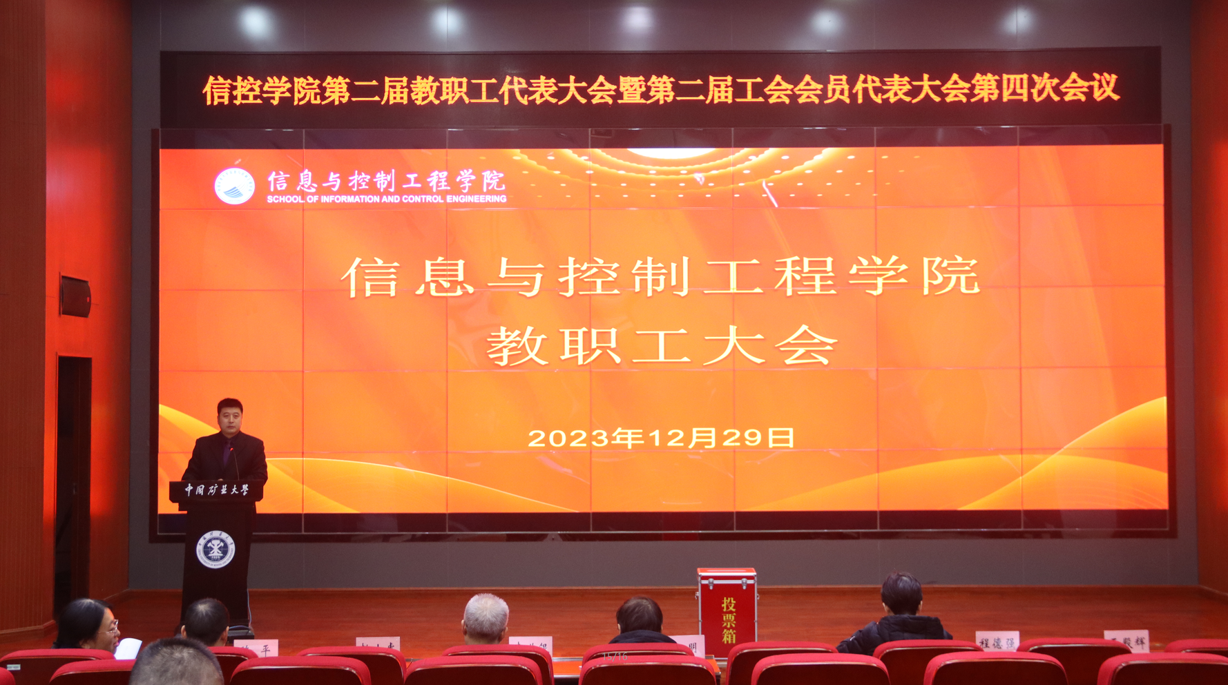 程德强致闭幕词。他对全院教职工一年来辛勤工作和取得成绩表示衷心感谢。他指出,2024年是学院“十四五”规划深入实施的关键一年,学院将充分听取教职工意见建议,一体化推进学科、专业、团队建设,砥砺奋进、勇毅前行,推动学院各项事业再上新台阶、取得新成绩,为能源资源特色世界一流大学建设贡献更多的信控智慧和力量。
