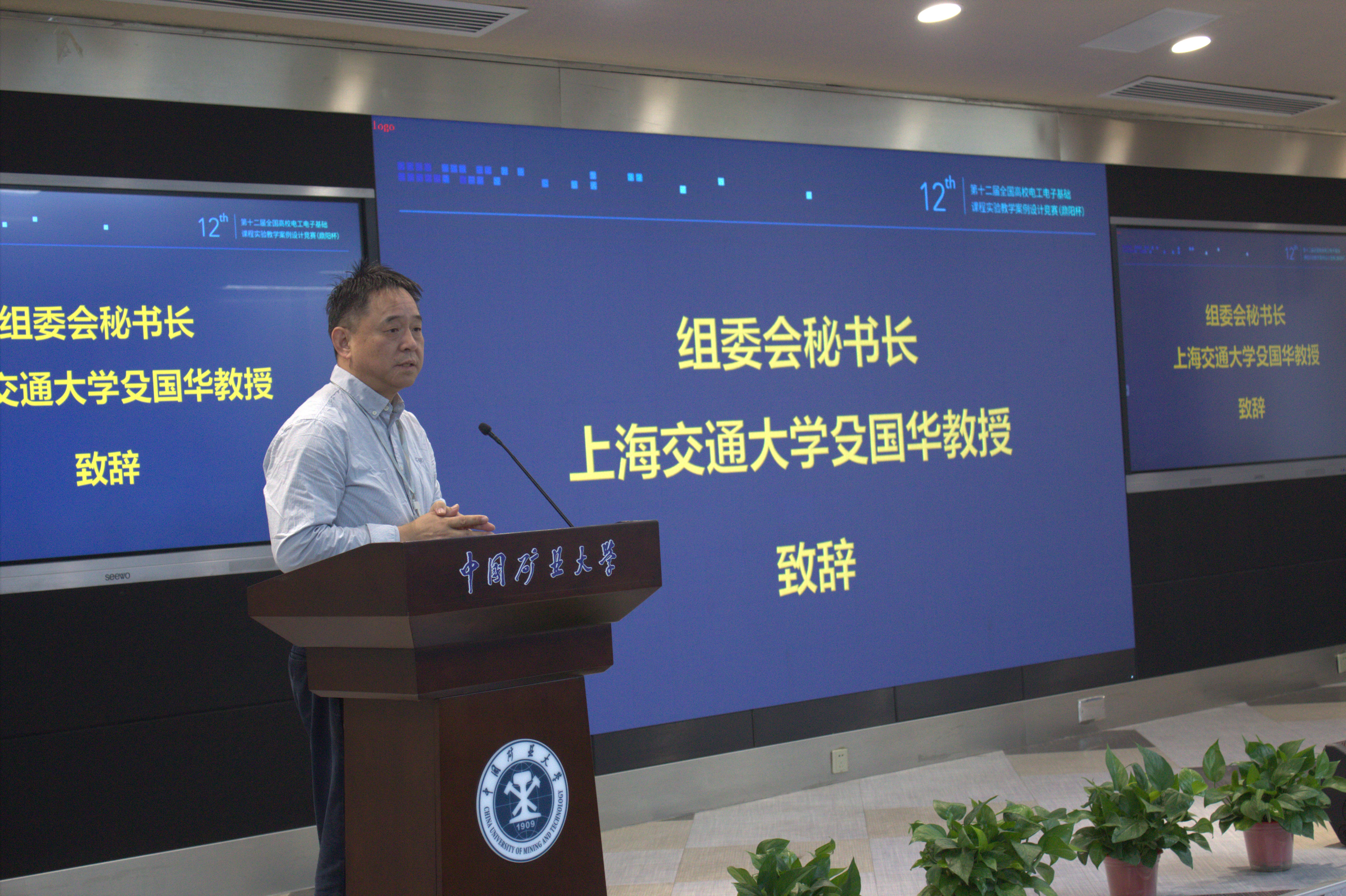 全国高校电工电子基础课程实验教学案例设计竞赛华东赛区组委会秘书长、上海交通大学殳国华教授致辞并宣讲本次竞赛规则。