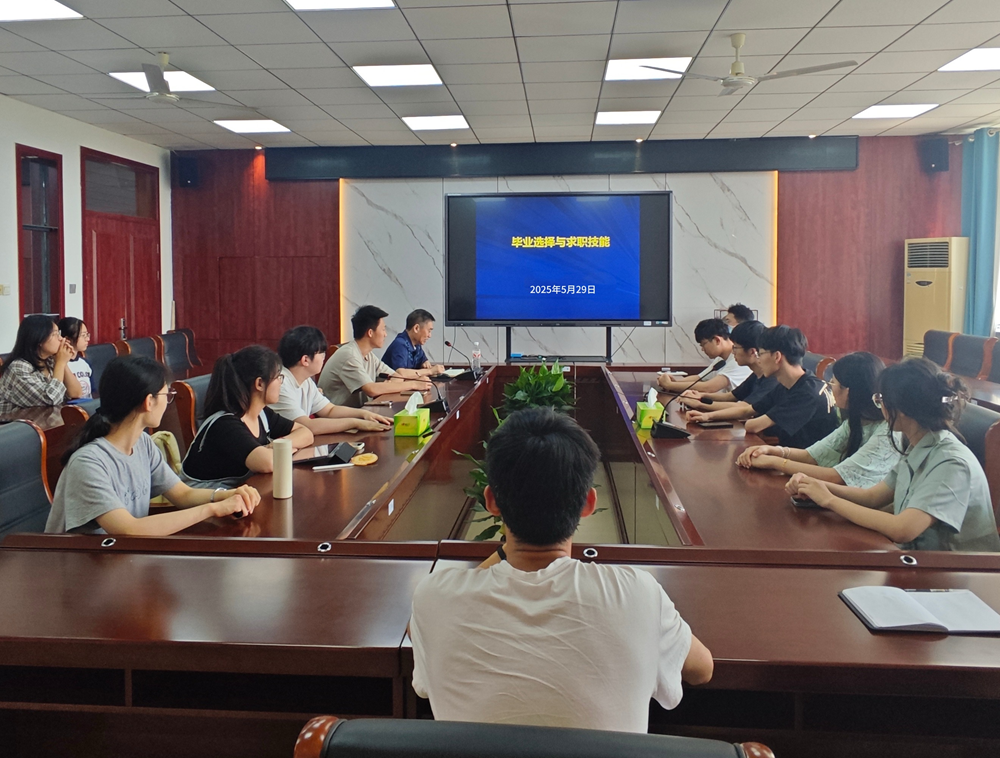 关工委委员葛如峰应邀作“毕业选择与求职技能”专题讲座。讲座由学院团委书记、2022级辅导员谢龙龙主持,2022级部分学生代表现场聆听。