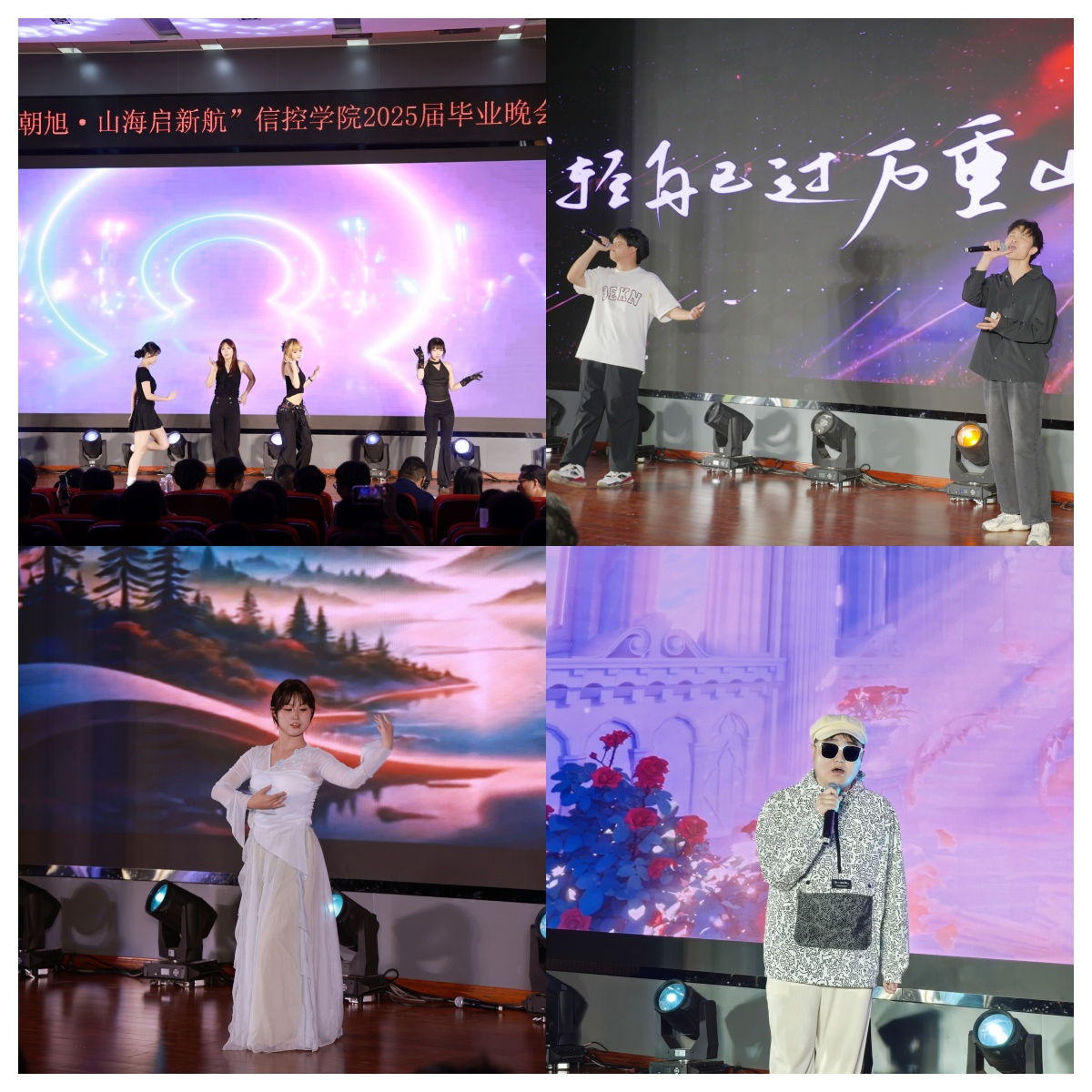 “云程迎朝旭,山海启新航”2025届毕业晚会在信控楼A01报告厅举行。学院党委副书记孙云霄,副院长陈平,学生工作办公室主任管钰,毕业班辅导员祁昊宇、李非、王晨及各年级辅导员参加晚会,与2025届毕业生欢聚一堂。