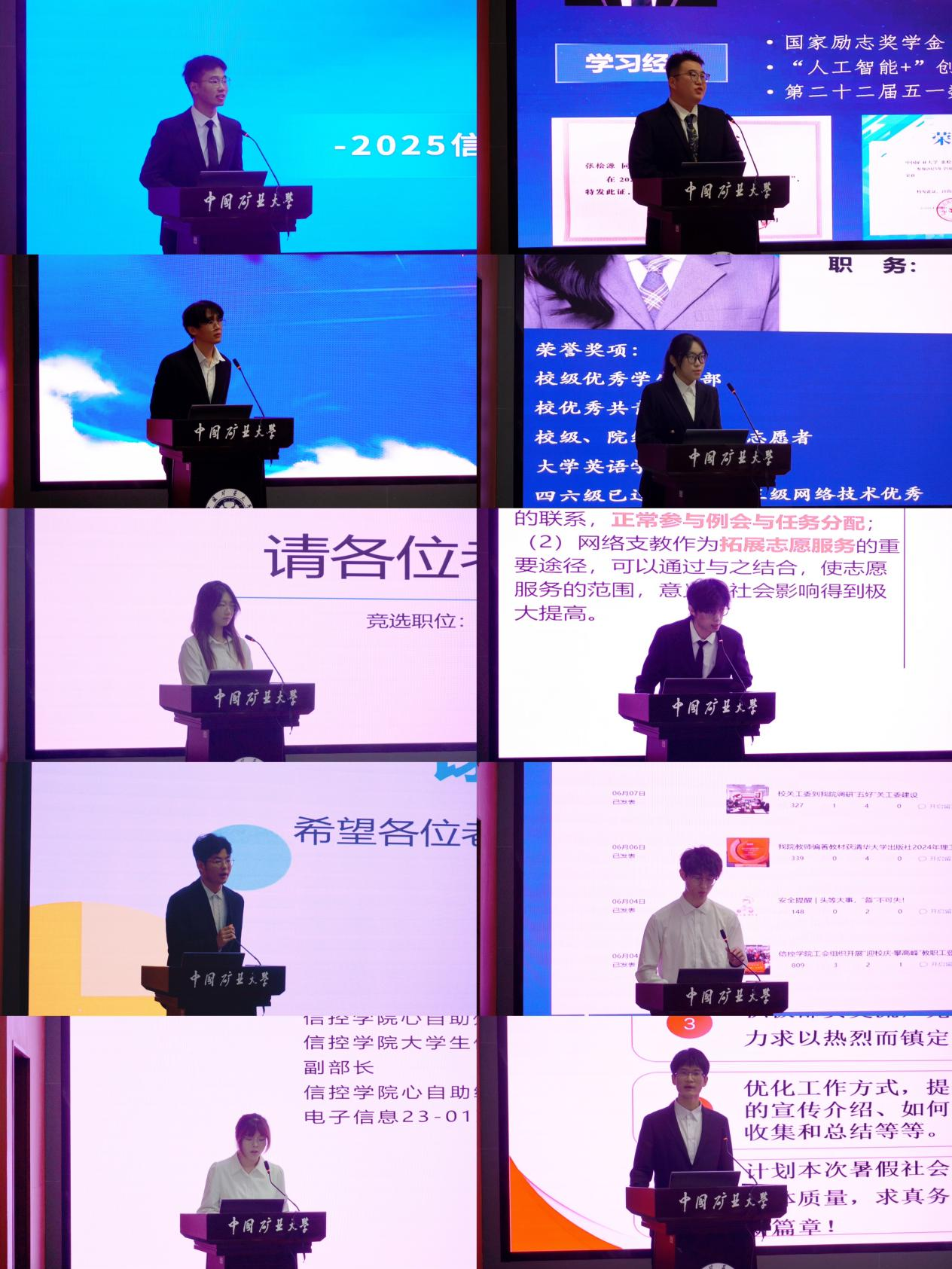 大会上,新一届团学组织主席团候选人进行竞选答辩。10名竞选人分别从个人简历、竞选优势、工作展望等方面依次进行陈述,在总结工作经验的同时就如何更好地发挥团学组织作用、健全组织机构、完善组织的运行机制等阐述工作理念。