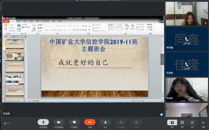 19-11班举行了“成就更好的自己”线上主题班会,本次班会由班主任陈世海组织,并且邀请了a片漫画