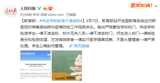 教育部:未经学校批准不准返校!坚决防止疫情向校园蔓延,确保师生生命安全!
