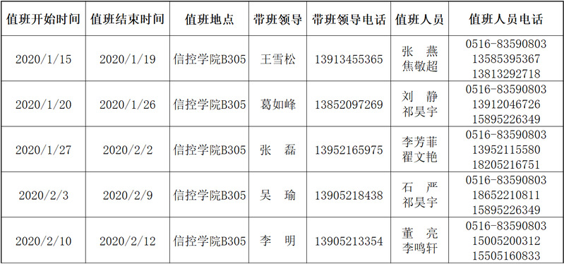 a片漫画 2020年寒假值班表