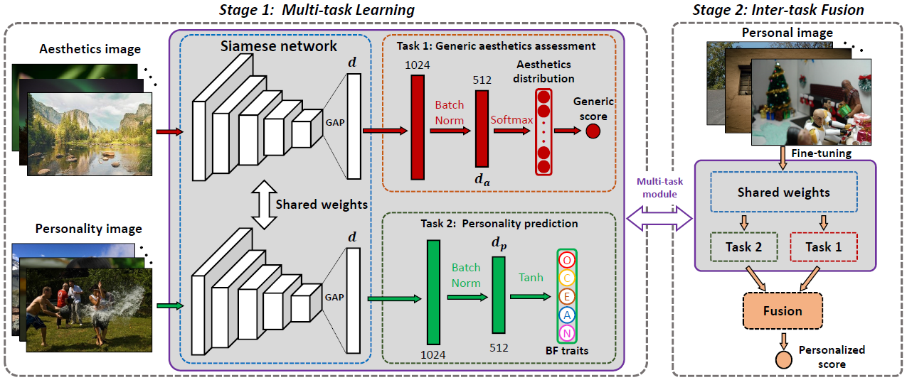近日,我校a片漫画 2017级博士研究生祝汉城与导师李雷达教授、以及来自美国加州大学伯克利分校、清华大学、新加坡南洋理工大学等单位的合作者,在国际顶级期刊IEEE Transactions on Image Processing在线发表题为“Personality-assisted Multi-task Learning for Generic and Personalized Image Aesthetics Assessment”的学术论文。该期刊是图像处理、多媒体与人工智能等领域的国际顶级期刊,是中国计算机学会(CCF)推荐的A类期刊,中科院一区TOP期刊,影响因子:6.790