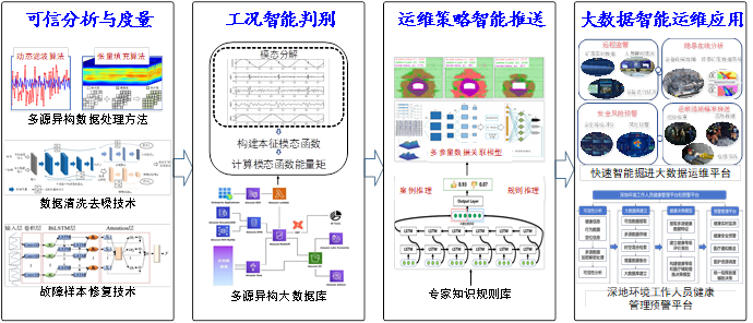针对矿井、深地等复杂环境下各作业环节之间高度耦合、不同设备的维护需求差异大等关键问题,研究了基于大数据技术的分析决策平台。通过构建数据可信分析与度量模型,大幅提升了复杂环境下人-机-环多源异构数据利用率,并提出了异常工况智能判别方法,形成了基于数据驱动的智能预警管控策略,有效改善了复杂环境运维管控措施的响应速度和适应能力,实现了对复杂环境下作业全过程的实时监测、安全预警与智能管控。