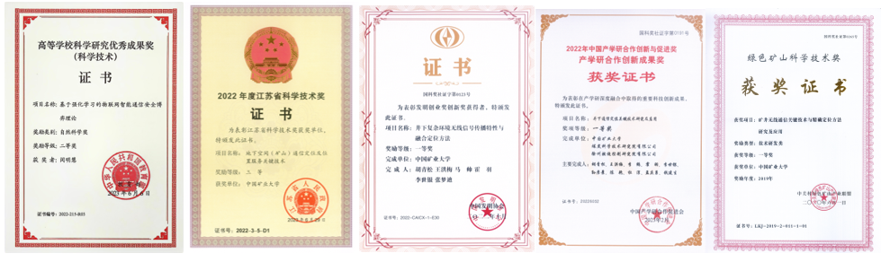 近年来,研究团队承担或参与国家863重点项目、国家重点研发计划项目、国家自然基金、军委科技委、装备发展部、江苏省科技支撑计划、江苏省产学研联合创新资金等国家和省部级科技项目30余项。获教育部科技进步二等奖、河南省科学技术二等奖、江苏省科学技术三等奖、发明协会发明创新一等奖、中国煤炭工业协会科学技术一等奖、中国电子学会科技进步二等奖、国防技术发明三等奖等省部级科技奖20余项,编撰出版《煤矿总工程师手册》“煤矿信息技术”专篇、《煤矿通信与信息化》等专著教材8本,授权国家发明专利80余项。近五年获得江苏省优秀硕士论文4篇,校优秀硕士论文12篇,博士生、研究生获国家奖学金10余人次,研究生就业形势优异,毕业生广泛就职于中煤科工、华为、百度、小米、中国移动、中国联通等领军企业,充分体现了人才培养与行业需求的高度契合。