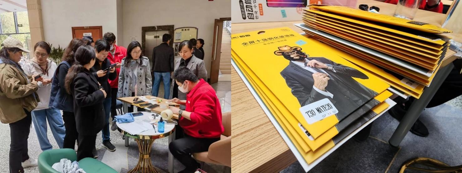 工会在学院楼一楼大厅举办“让温暖触手可及—手机贴膜进校园”活动。学院70余名教职工参加活动。
