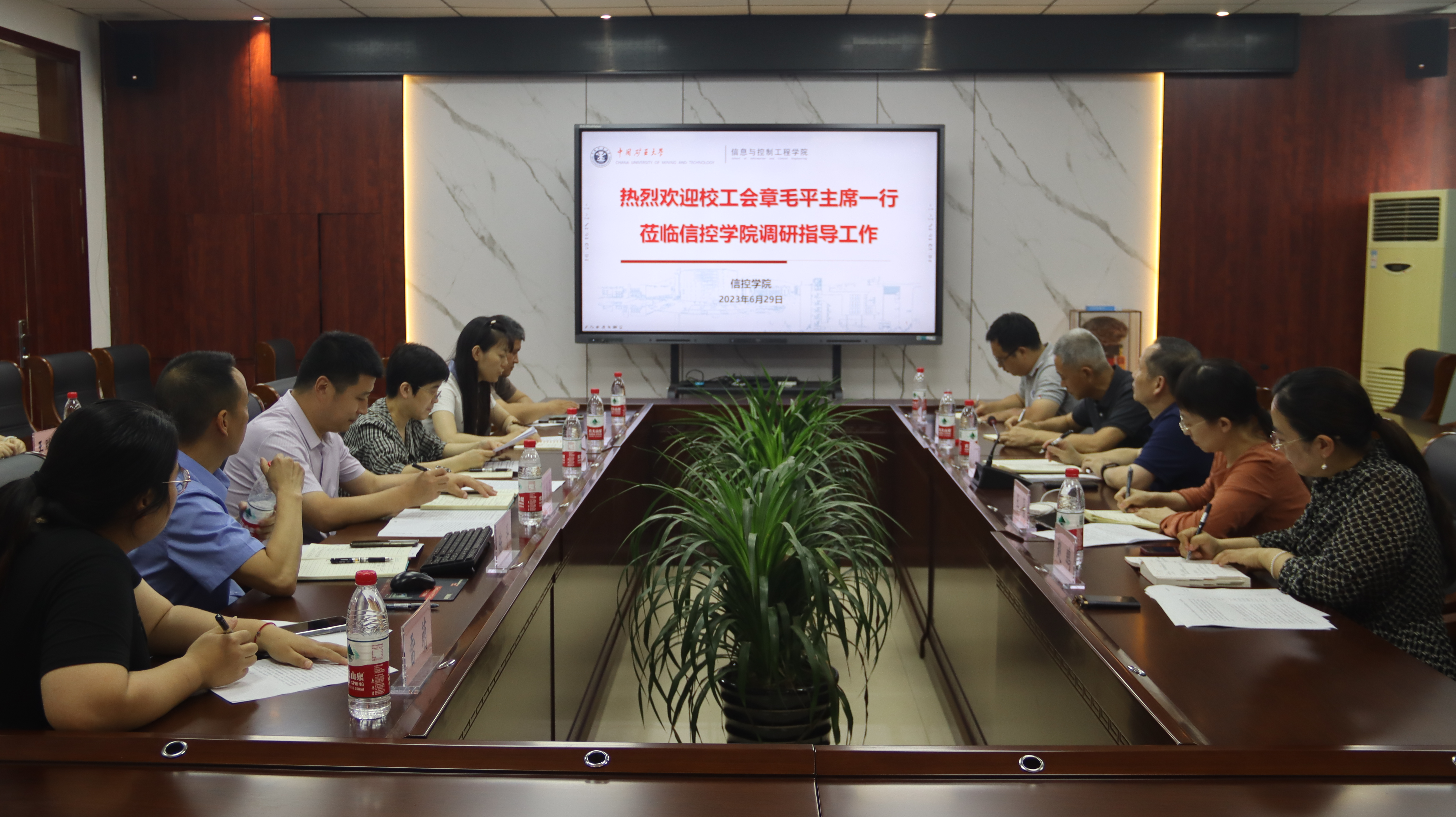 调研工会工作,学院在信控楼A311举行座谈交流会。我院党委书记程德强、院长王雪松、副院长陈平、工会主席赵培培以及学院工会委员参加会议,座谈会由程德强主持。