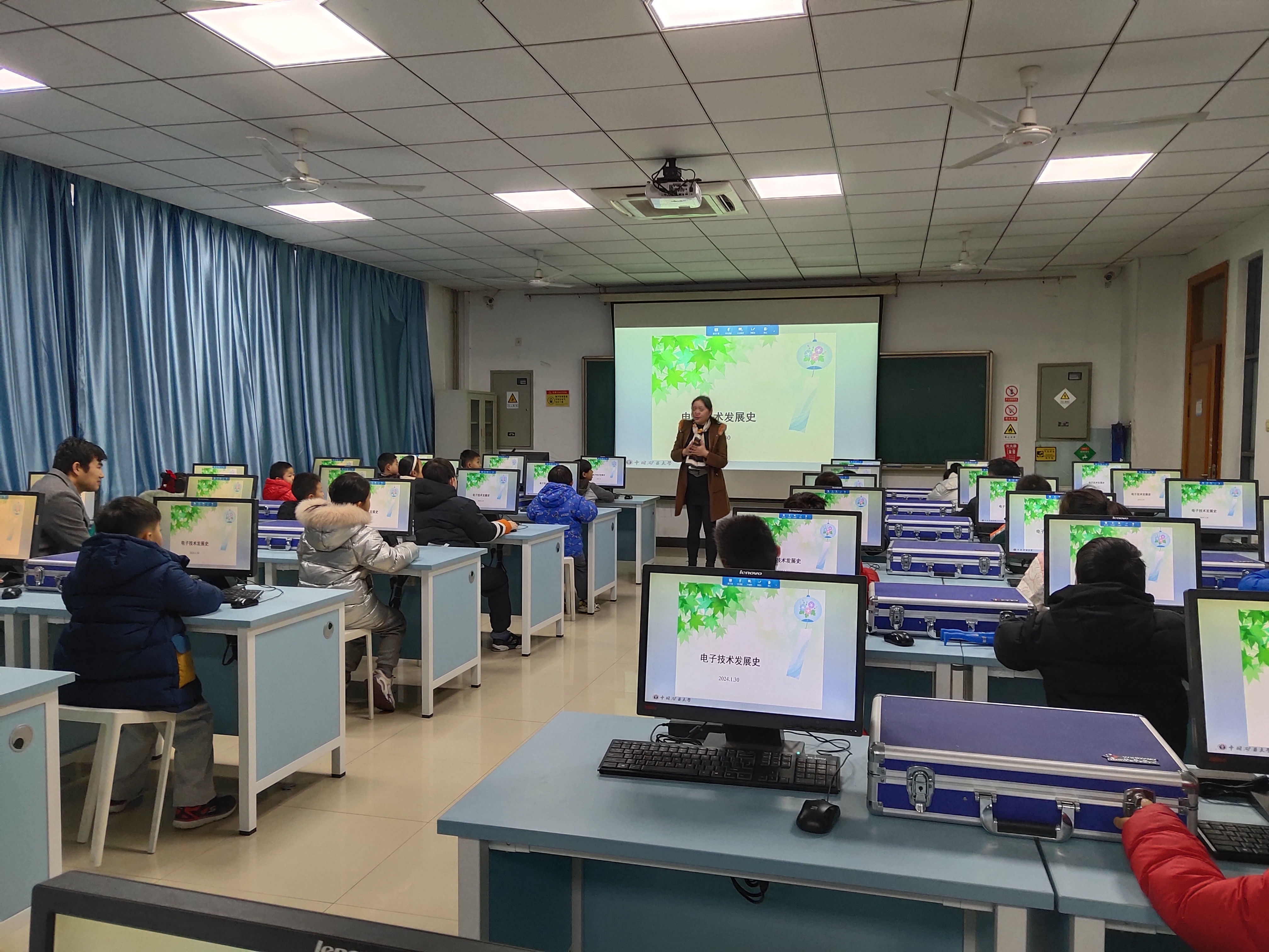 根据学校关于寒假期间实验室开放的部署安排,1月30日上午,我院电工电子国家级实验教学示范中心举办2024年寒假实验室面向中小学生开放电工电子科普活动。来自矿大附属中小学、江苏师范大学附属学校、青年路小学、铜山实验小学、徐州绿地小学等单位的近40名中小学生及学生家长,副院长刘海、陈平、实验中心相关人员参加活动。